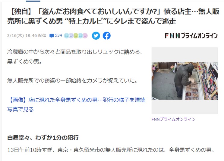 【悲報】窃盗被害の無人販売所さん、ブチギレ「盗んだ肉食べて美味しいんですか!!!?」