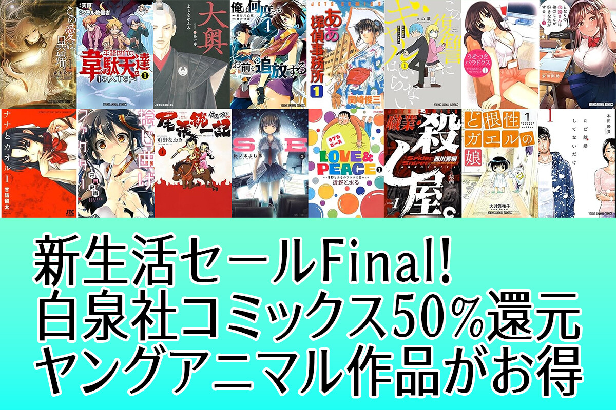 「この愛は、異端。」「大奥」など!Kindleで白泉社 ヤングアニマルコミックスが全巻50%還元 60作品以上まとめ【新生活セールFinal】