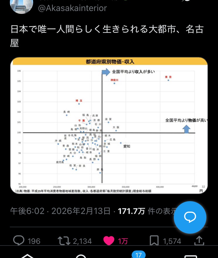 【画像】名古屋激推し民「名古屋は、日本で唯一人間らしく生きられる大都市」