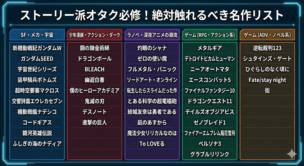 60年代アトム、70年代ガンダム、80年代ドラゴボ、90年代エヴァ、00年代デスノ、10年代鬼滅