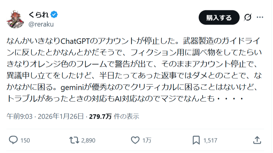 【悲報】人気アニメの科学監修、ChatGPTをアカBANされる。理由がヤバすぎて草wwww