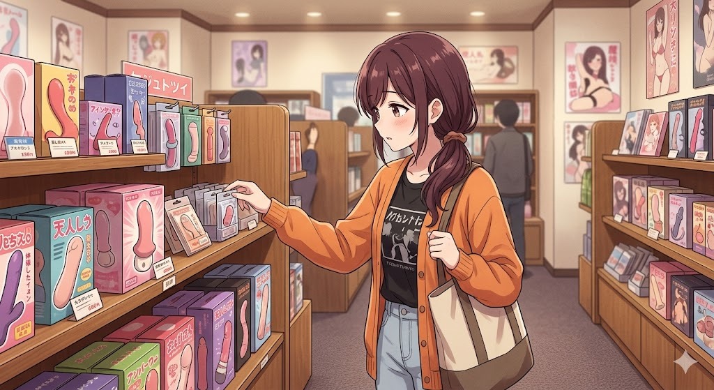 【画像】ワイ「アダルトショップでバイブ物色する女の子描いて❤」