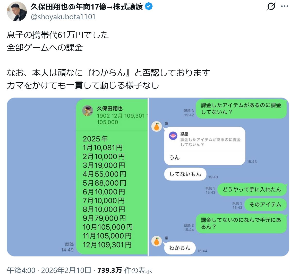 【悲報】親「ゲームに60万課金しただろ!」息子「わからん!」←この場合どうする?