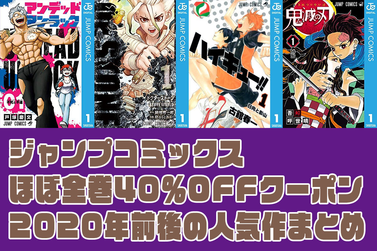 【クーポン】「アンデッドアンラック」「Dr.STONE」全巻対象!Kindleでジャンプコミックス40%OFF 「ハイキュー!!」「鬼滅の刃」など2020年前後を彩る作品まとめ(4/9まで?)