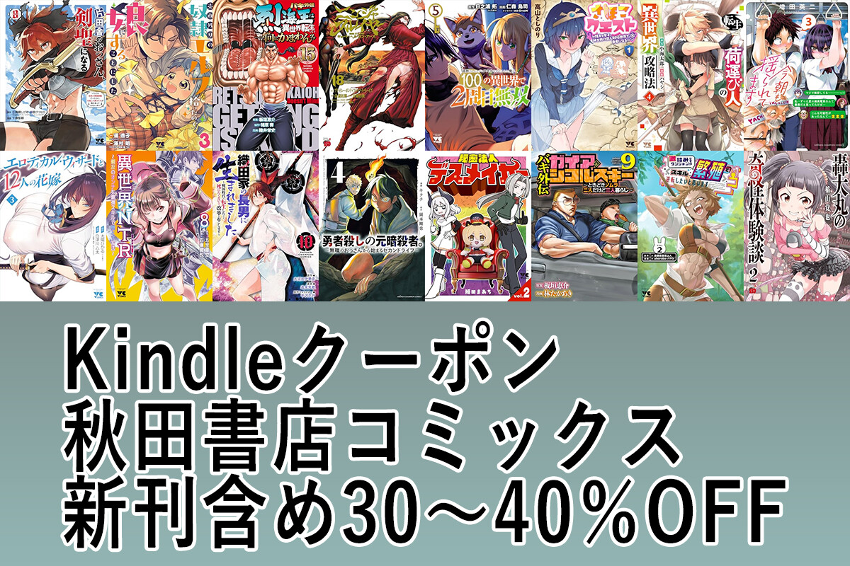 「片田舎のおっさん、剣聖になる」「売れ残りの奴隷エルフを拾ったので…」など対象!Kindleで秋田書店コミックス値引き30~40%OFFクーポン 30作品まとめ(3/26まで?)