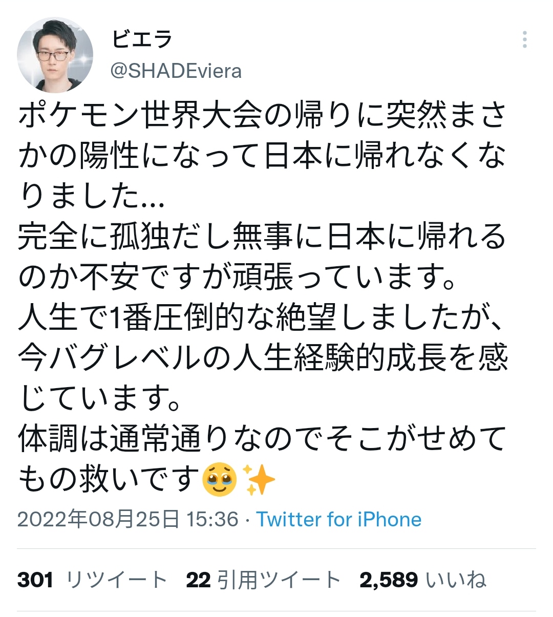 【悲報】ポケモン世界大会優勝者さん、日本に帰れなくなり絶望してしまうwwww