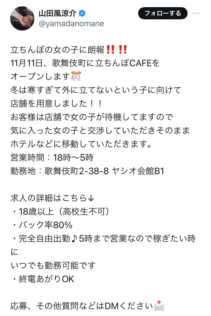 【画像】イケメンX民「歌舞伎町に『立ちんぼカフェ』オープンしまーす!」