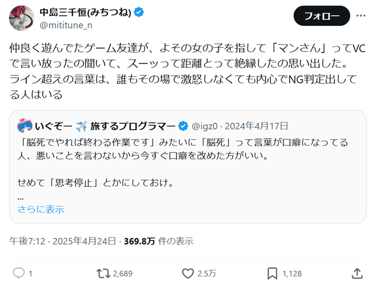 【悲報】ゲーマー男、「ライン超え」の言葉を放って絶縁されてしまうwwww