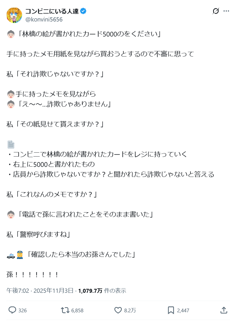 【悲報】おばあちゃん「林檎のギフトカードください」店員「詐欺では?」→結果wwww