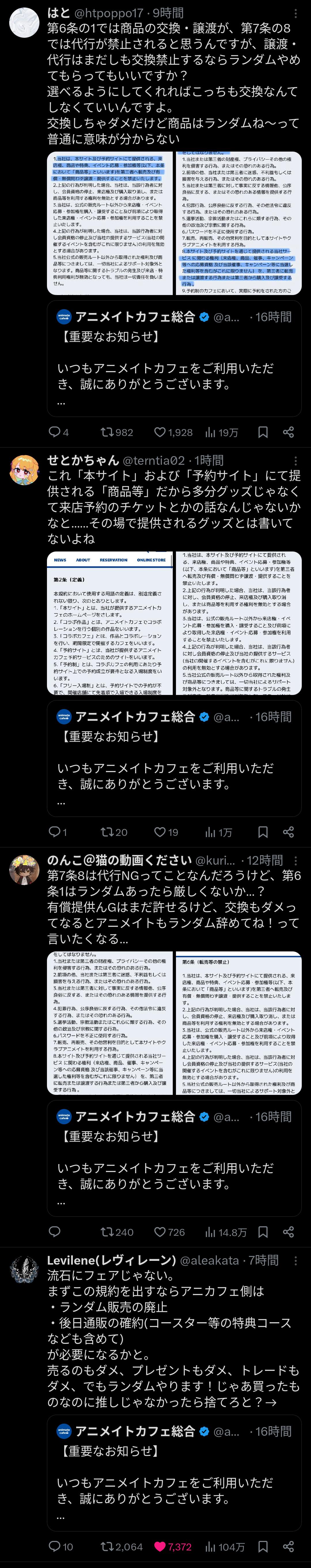 【悲報】アニメイトカフェ、ランダム商法してるのに譲渡・転売禁止を規約にして批判殺到wwww
