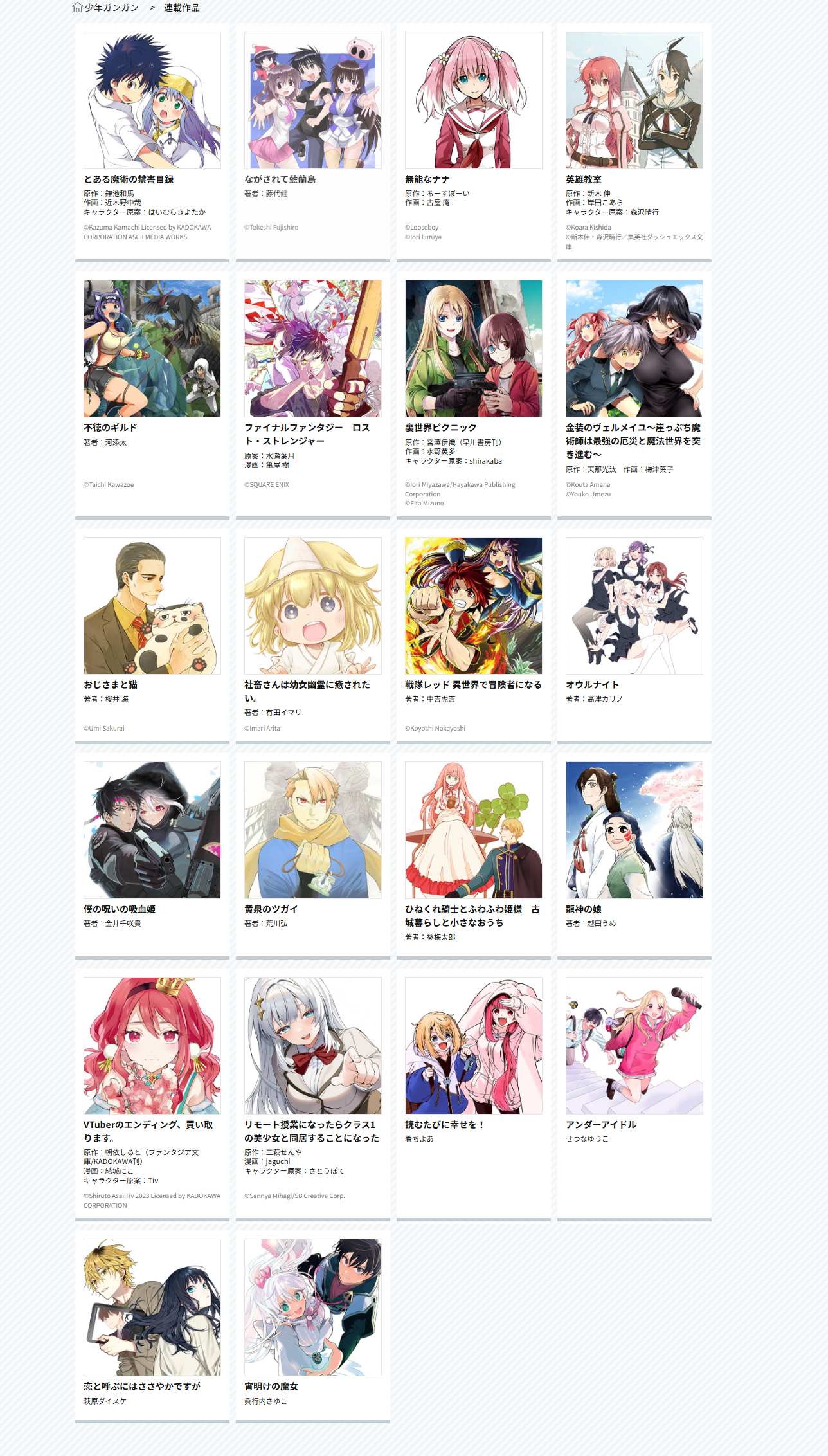 【画像】少年ガンガン、現在の連載陣こちらwwww