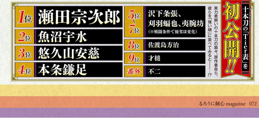 るろうに剣心の十本刀の作者公認強さランキング、疑問しかない