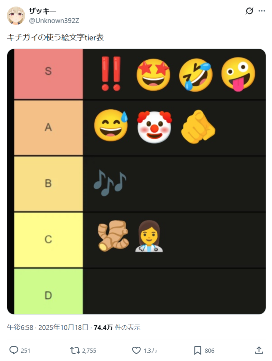 【画像】やべぇ奴が使いがちな絵文字がこれらしいwwww