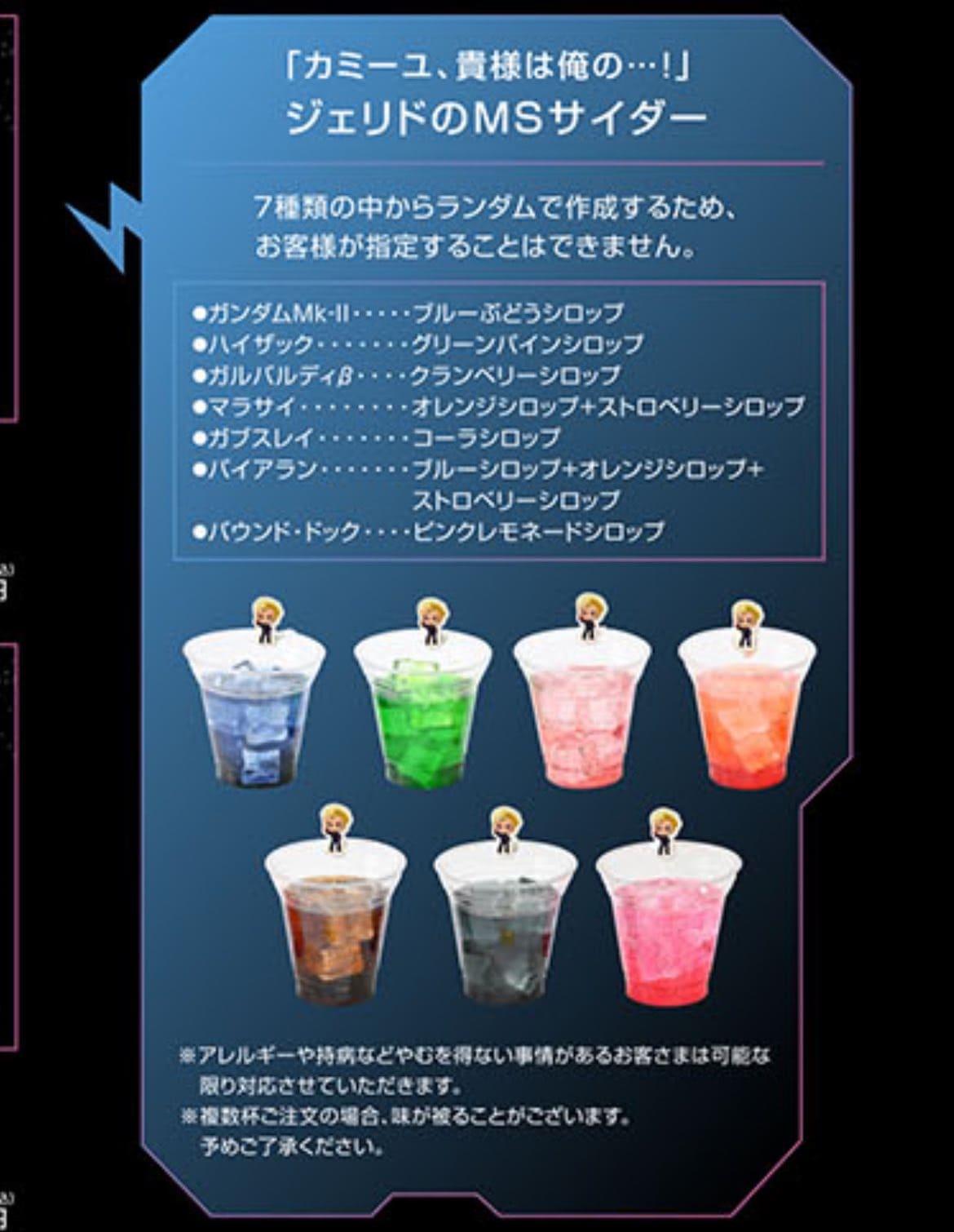 カフェ「Zガンダムのコラボドリンク?よしカミーユはZ、クワトロは百式、ジェリドは…」
