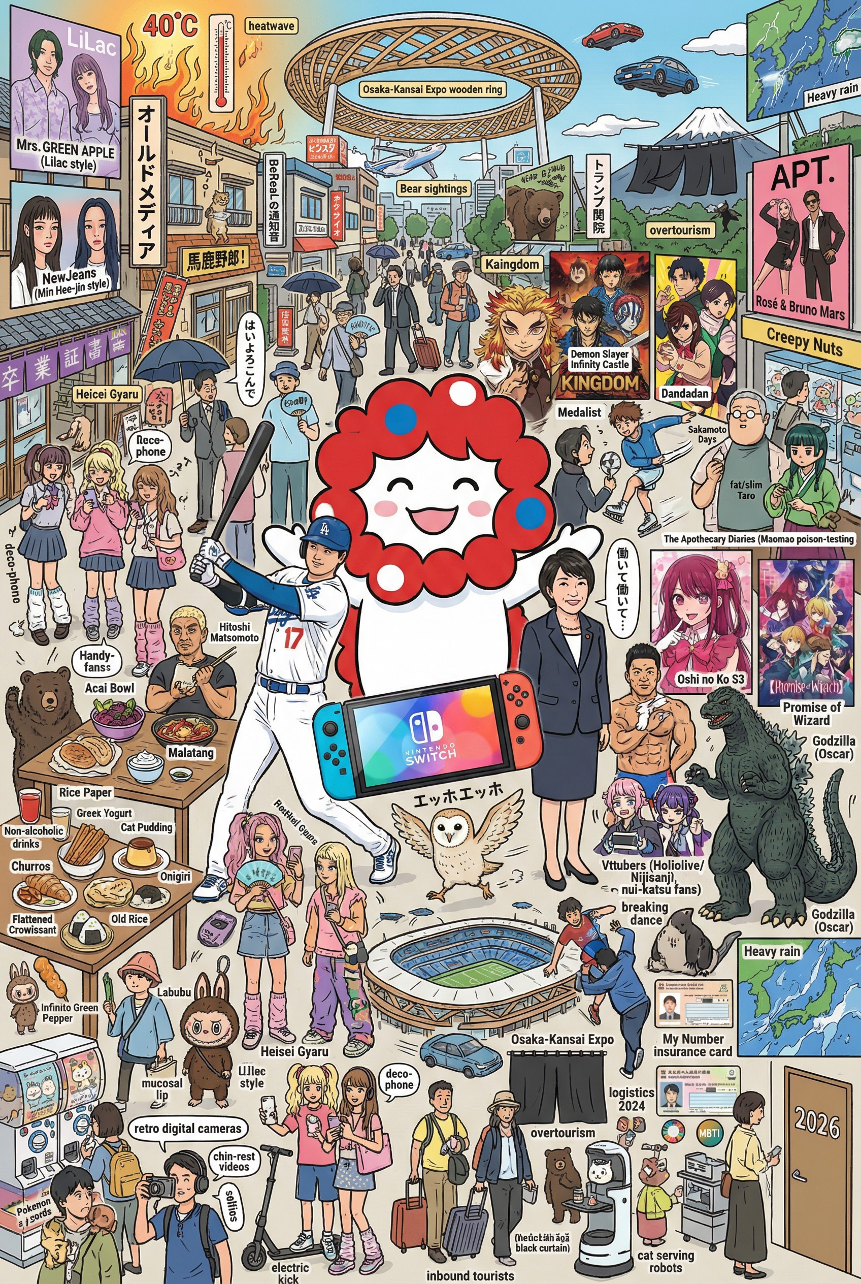【画像】生成AIに「今年話題になったもの100個」を描いてもらった結果wwww