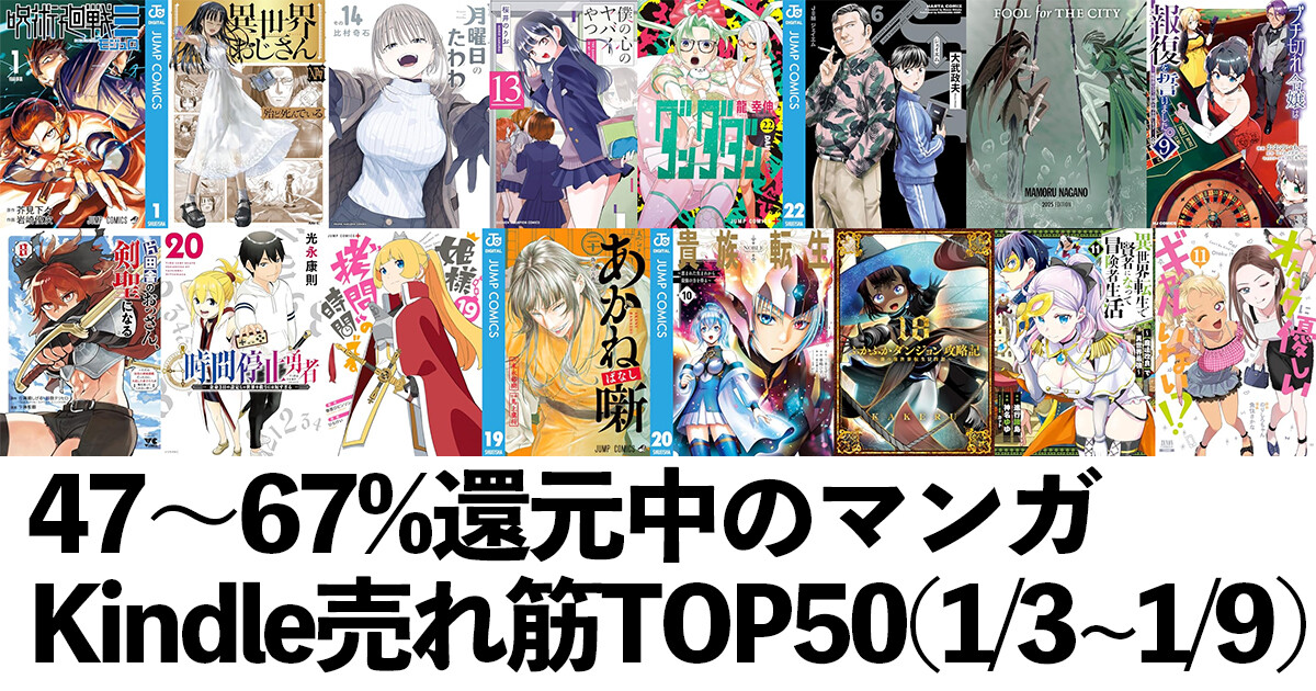 【Kindle大規模還元セール】47~67%還元!年始マンガ売れ筋TOP50!ジャンプ、ヤンジャン、チャンピオンコミックス人気【ランキング】