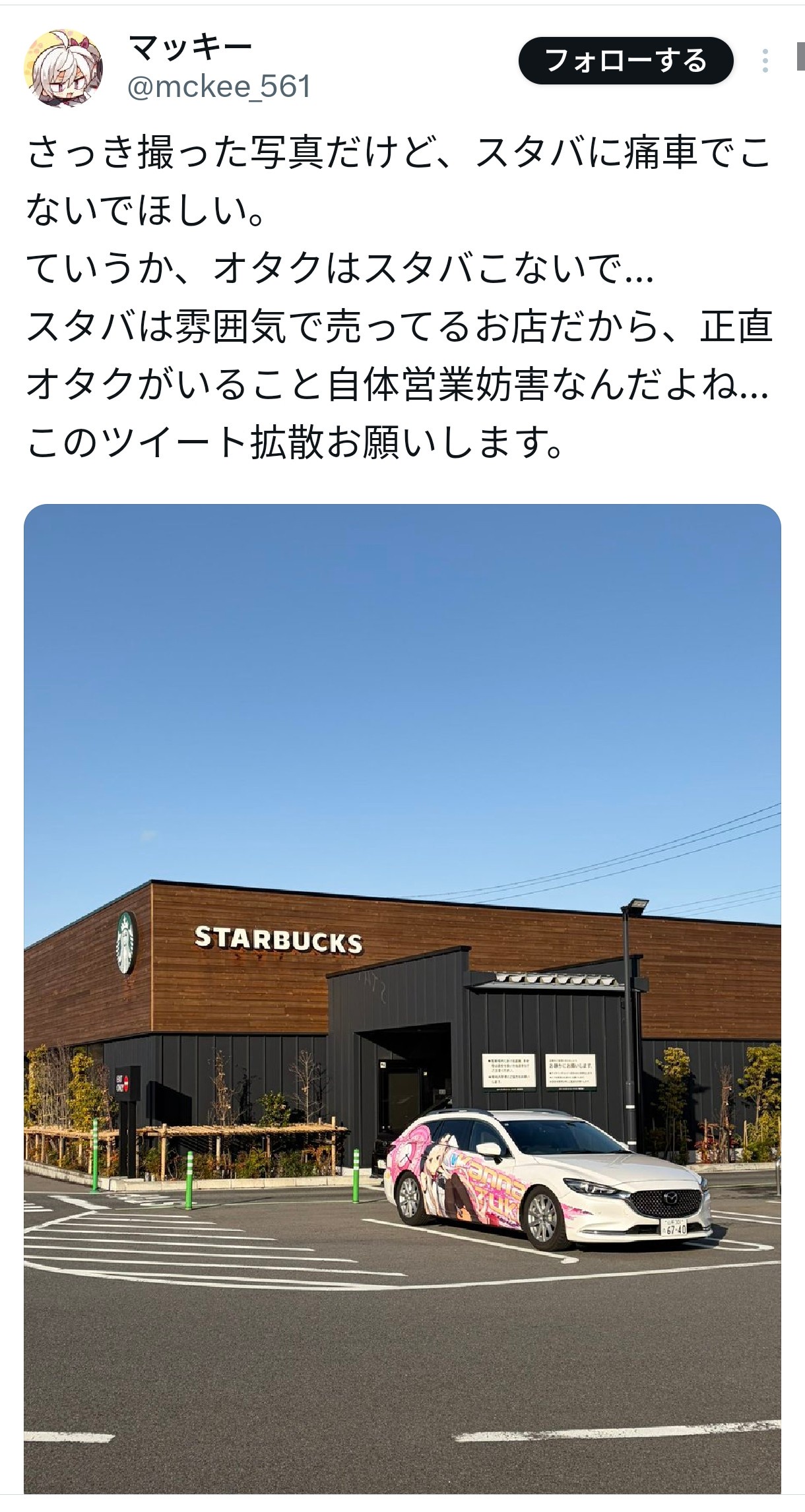 【悲報】痛車オタク、スタバ民から迫害されてしまうwwww