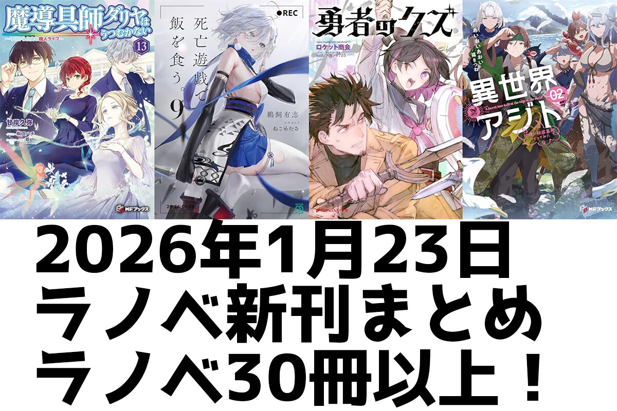 【1/23発売】ラノベ新刊:「魔導具師ダリヤはうつむかない 13」「死亡遊戯で飯を食う。9」「勇者のクズ」「異世界アジト 2」など