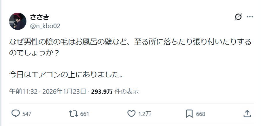 【悲報】女さん「なんで男性の下の毛って至る所に落ちたり張り付いたりするんだ?」→共感の嵐wwww