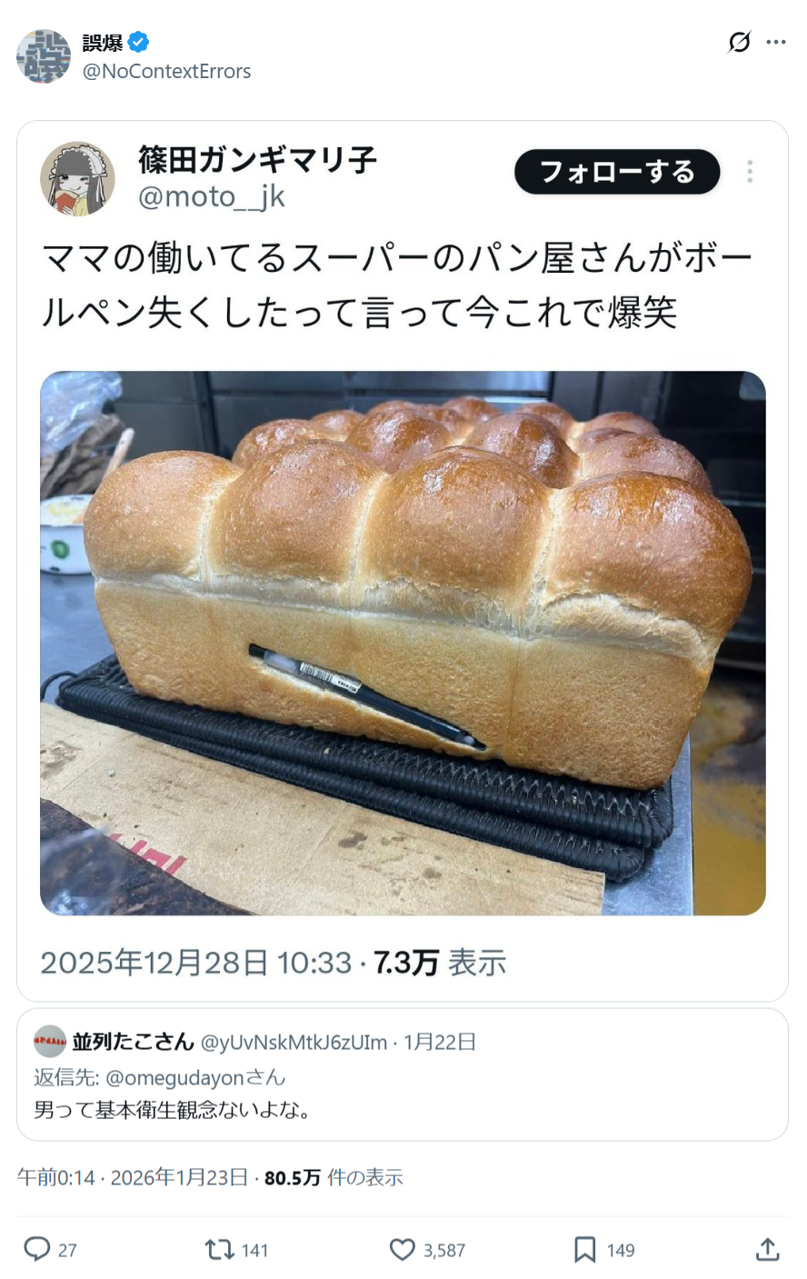 【画像】パン屋でボールペンを失くした結果→とんでもない場所から出てきてて草wwww