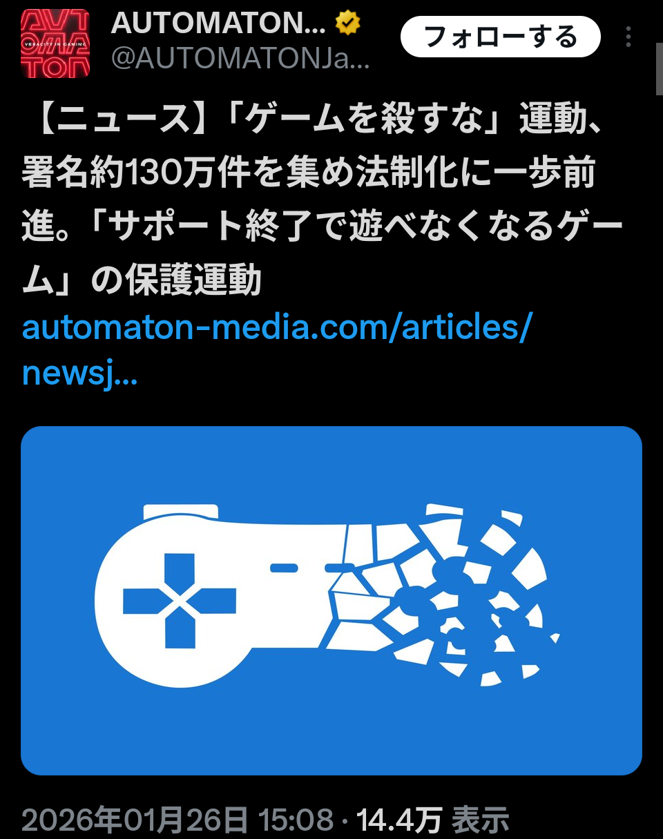 【朗報】「サ終のゲームをせめてオフライン化しろ」と海外で署名運動が広がるwwww