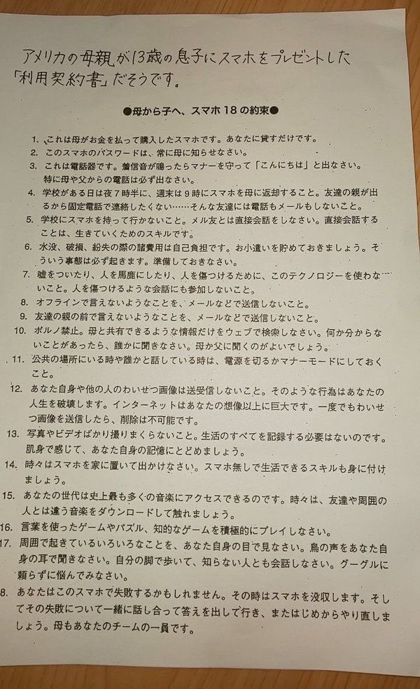 【画像】「母から子へ、スマホ18の約束」、正論すぎて大絶賛されるwwww
