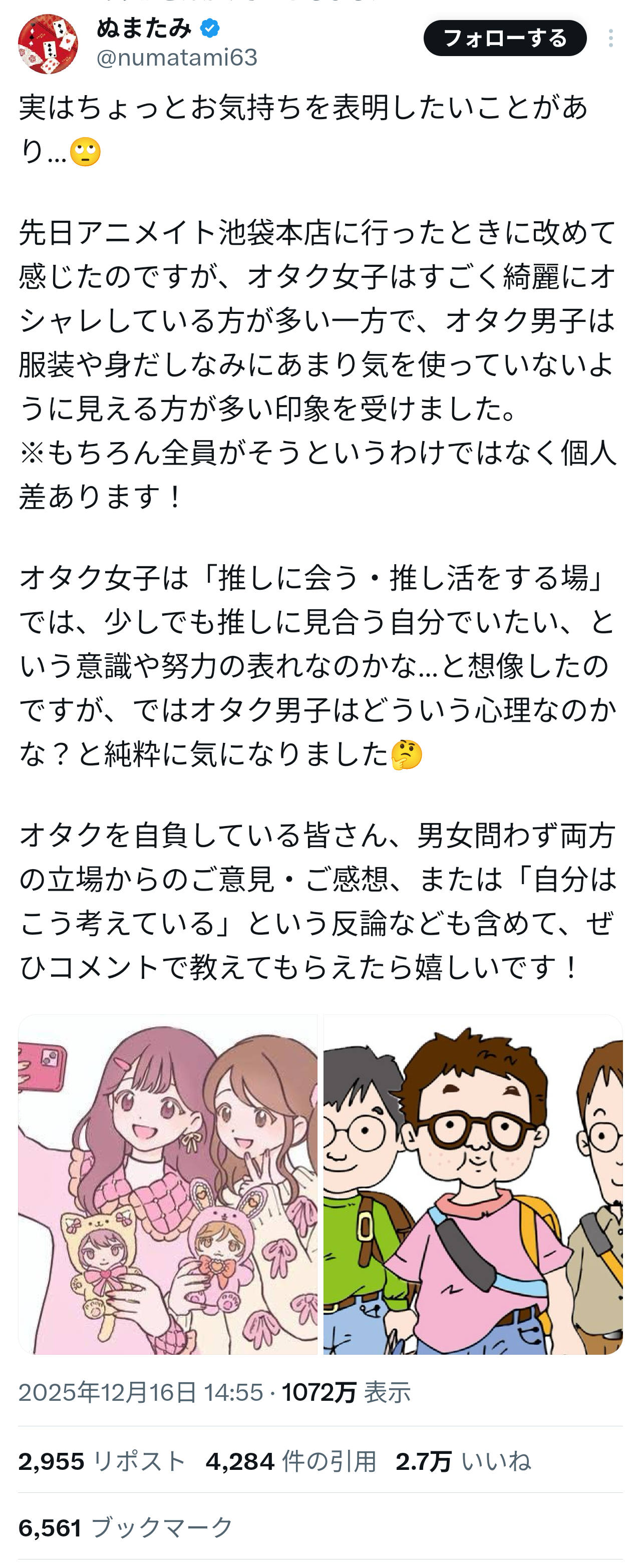 【悲報】オタク女子「えっ、普通推しに見合う自分でいるためにオシャレするよね!?なんで男オタクって身だしなみに気を使わないの?」