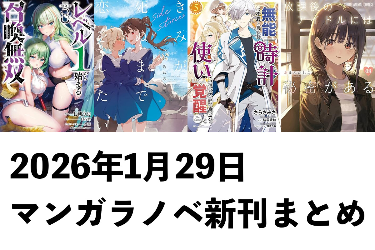 【1/29発売】マンガラノベ新刊:「レベル1から始まる召喚無双 8」「きみが死ぬまで恋をしたい side stories」「放課後のアイドルには秘密がある 8」など