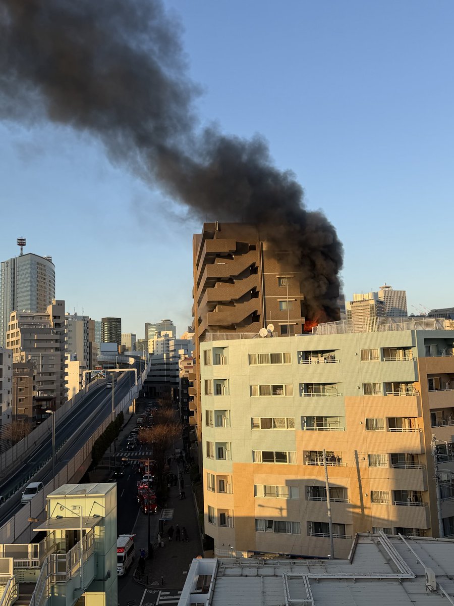 【悲報】都内12階建てマンションの火事の様子が撮影される。これ上の階も下の階ももう住めないよな…?
