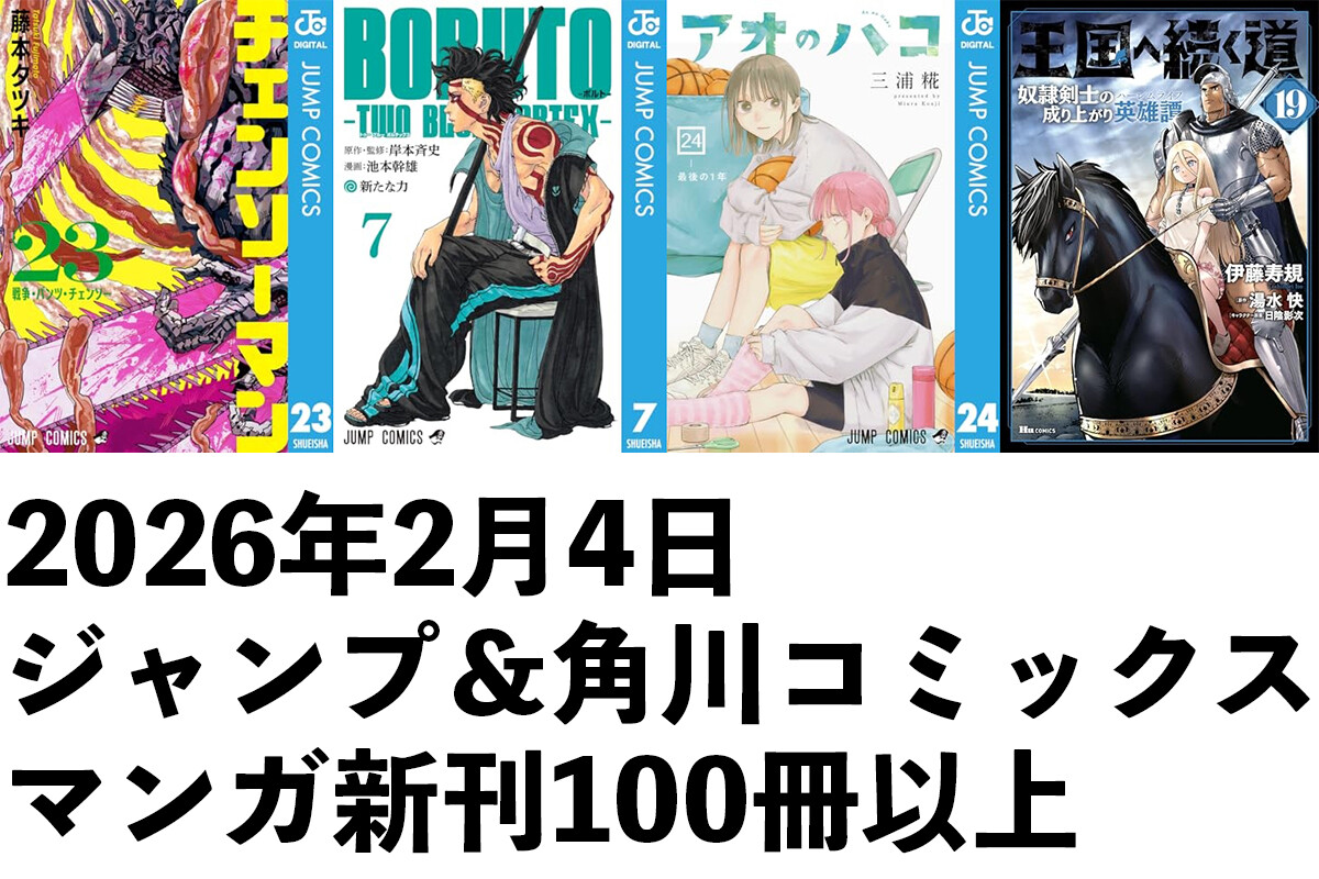【2/4発売】マンガ新刊:「チェンソーマン 23」「BORUTO-ボルト--TWO BLUE VORTEX- 7」「アオのハコ 24」「王国へ続く道 19」「瀧夜叉姫 8」など100冊以上