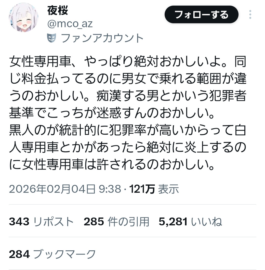 【悲報】アニメアイコン「女性専用車はおかしい!」→強男に正論で返されて終わるwwww