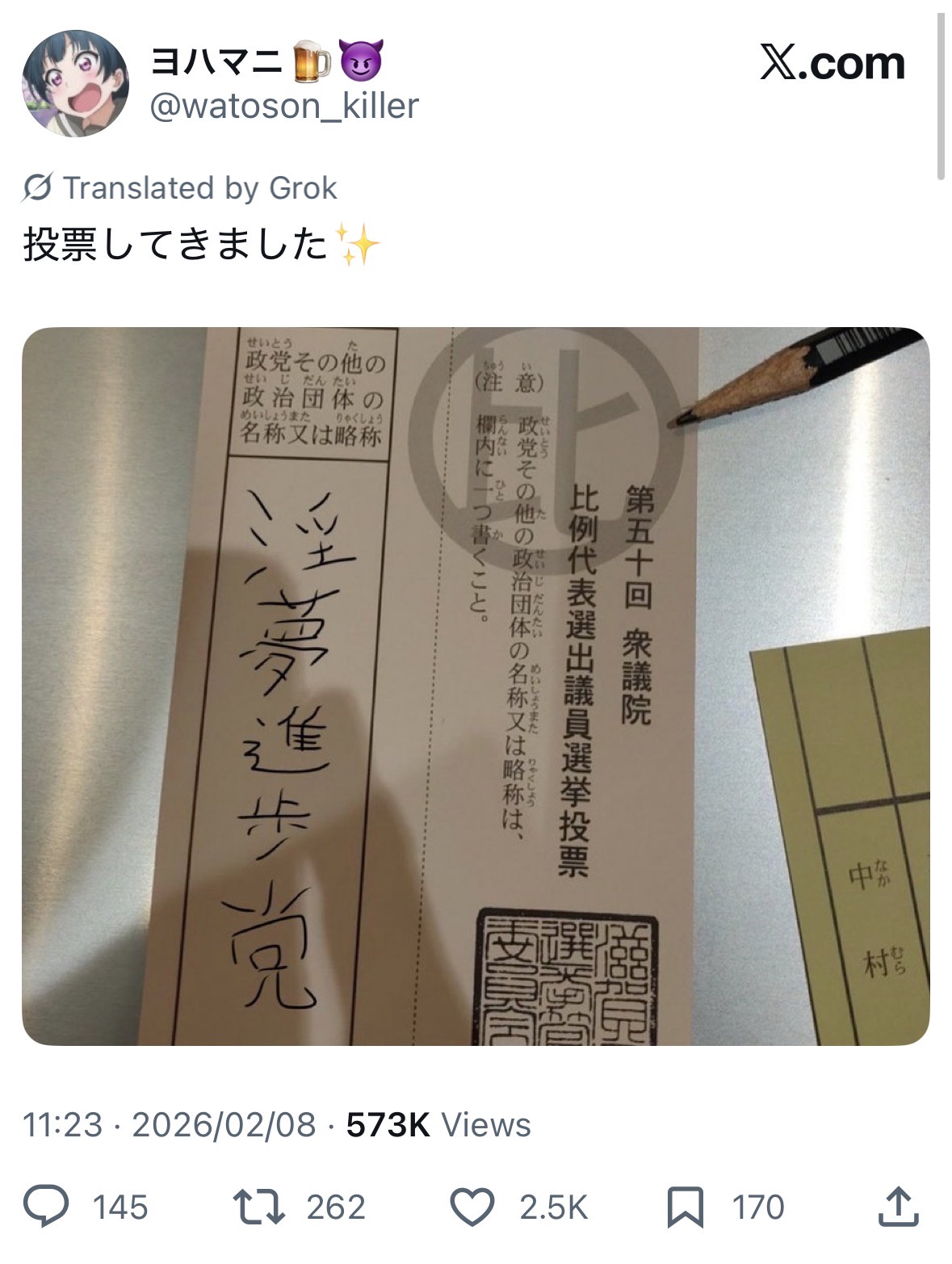 【画像】アニメアイコン「投票してきました」(パシャッ→ふざけすぎて叩かれるwww