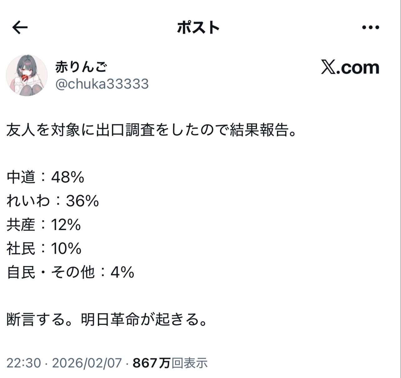 【悲報】アニメアイコン「断言する。明日革命が起きる」→翌日wwww