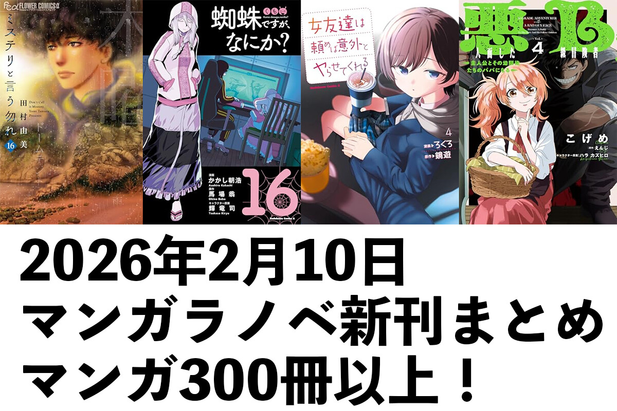 【2/10発売】マンガラノベ新刊:「ミステリと言う勿れ 16」「蜘蛛ですが、なにか? 16」「女友達は頼めば意外とヤらせてくれる 4」「悪人面したB級冒険者 4」など