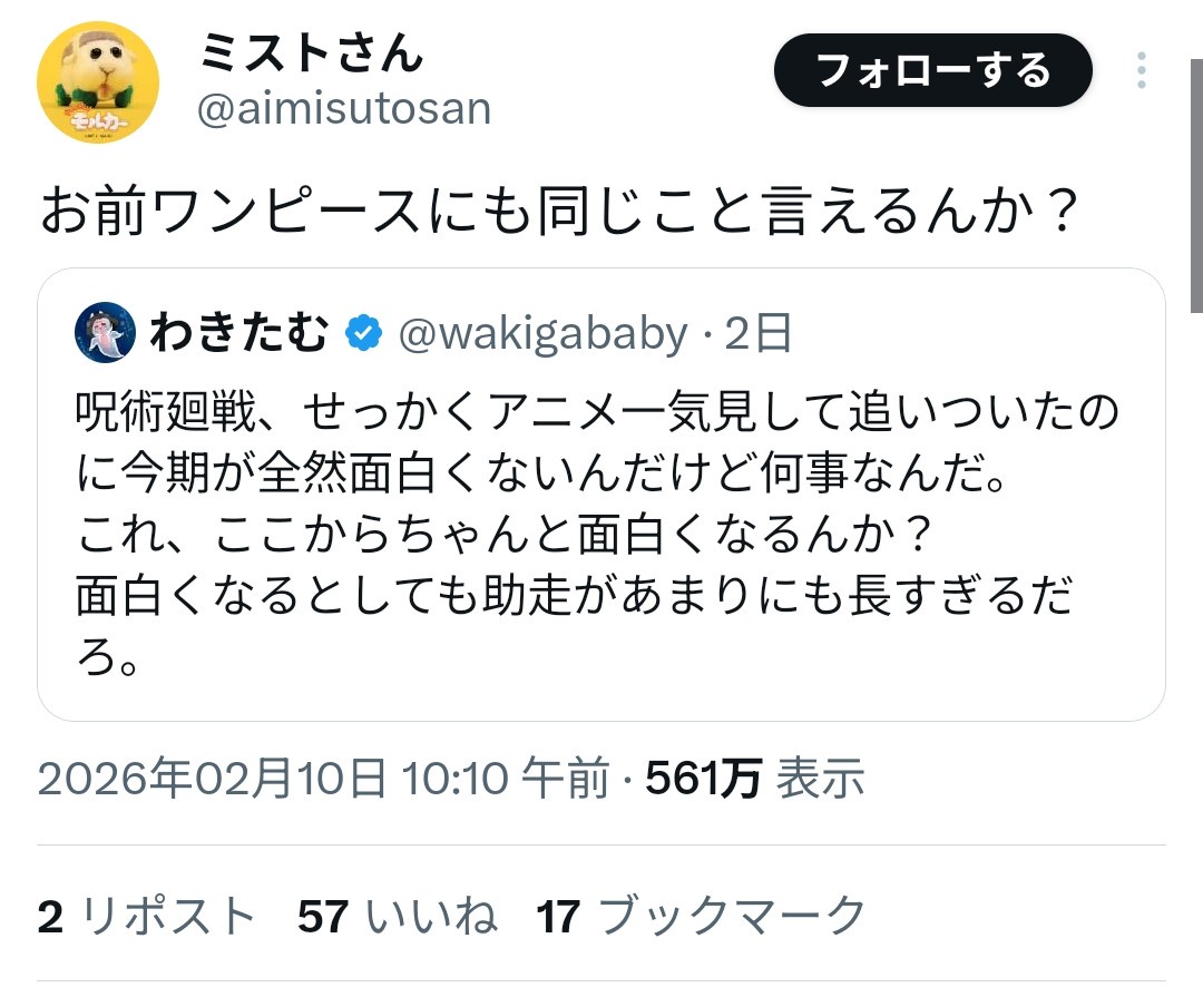 【悲報】X民、ワンピースにクッソ辛辣な言葉を浴びせてしまうwwww