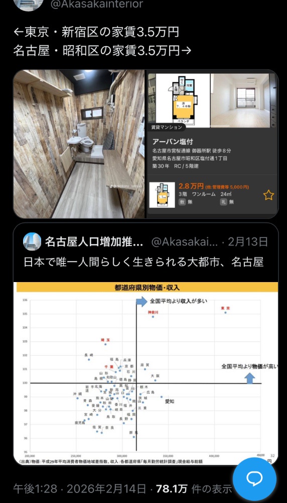 【画像】東京と名古屋の家賃3.5万の物件を比較してみた結果wwww