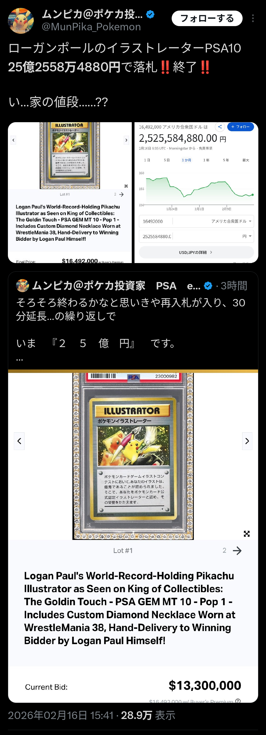【悲報】海外YouTuber「ポケモンカード8億円で買うわw」→オークションに出されとんでもない値段が付くwwww