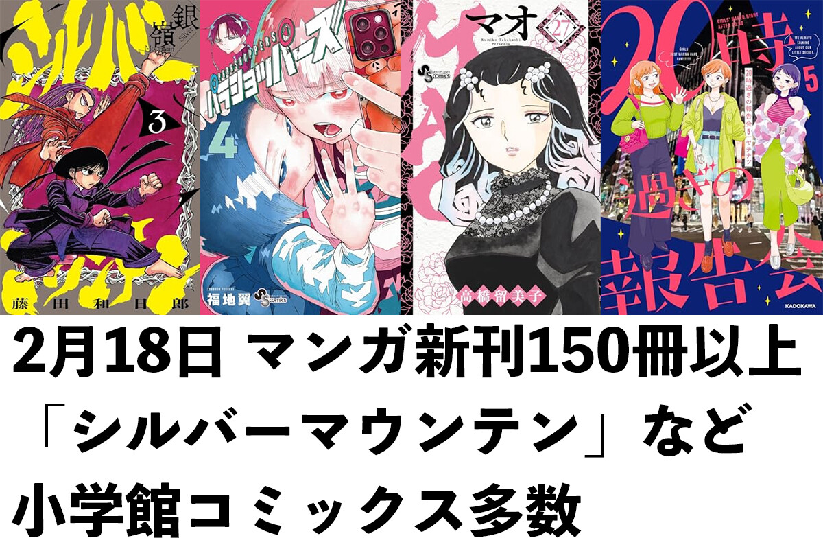【2/18発売】マンガ新刊:「シルバーマウンテン 3」「パラショッパーズ 4」「MAO 27」「20時過ぎの報告会 5」など150冊以上