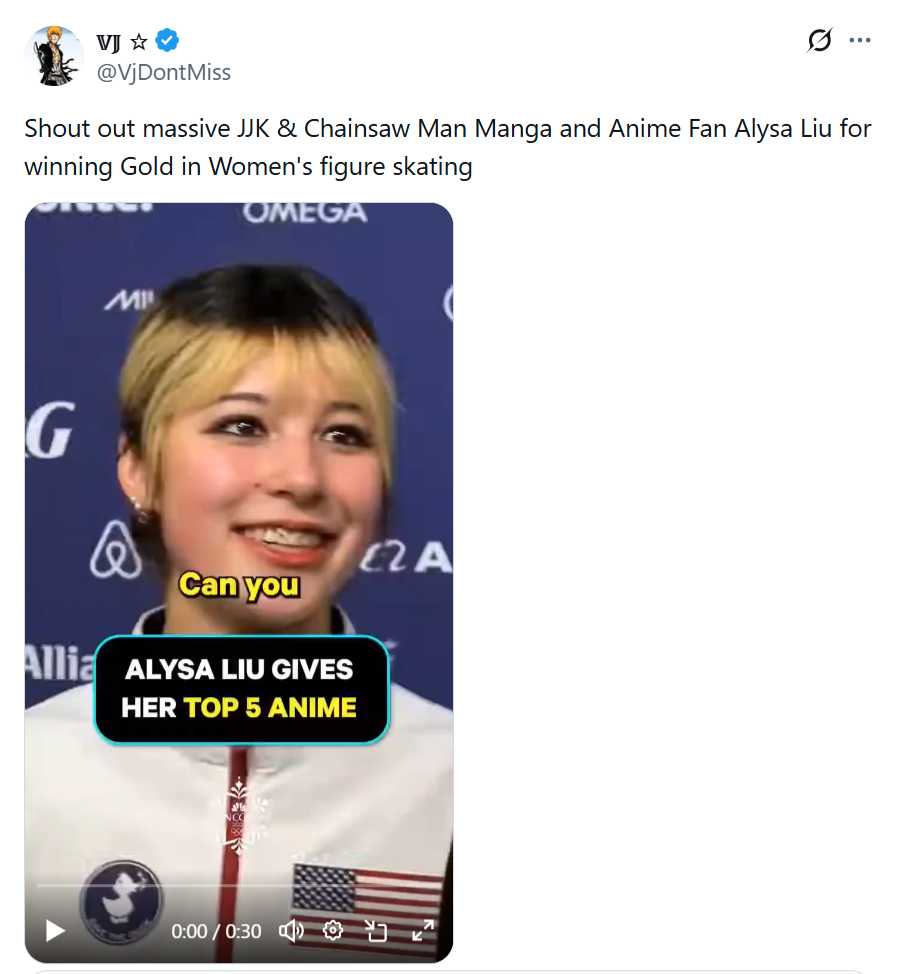 【朗報】フィギュア女子金メダリスト、日本アニメの大ファンだった→好きな作品5選がこれwwww