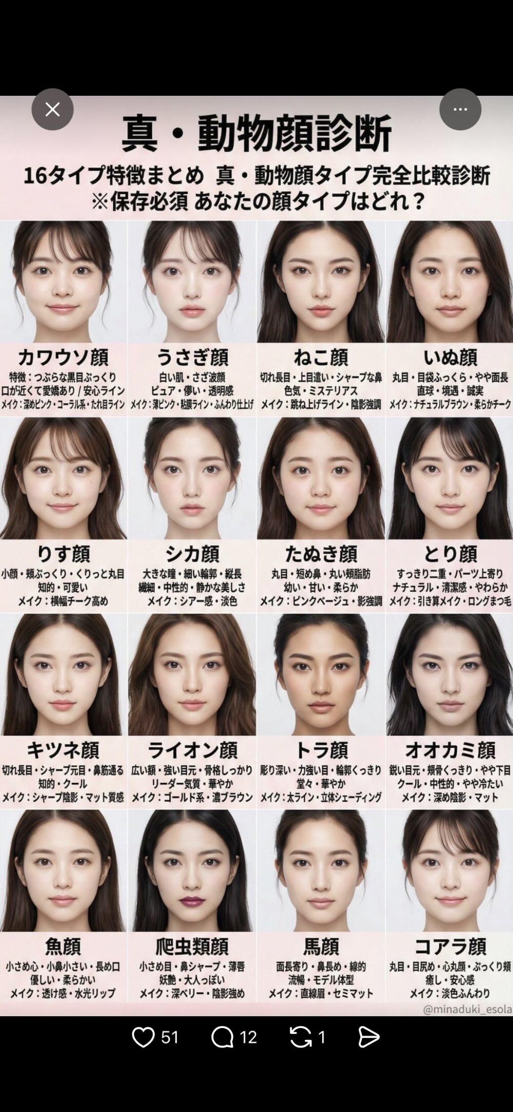 【画像】女子の「顔のタイプ」、だいたいこの16通りに落ち着くwwww