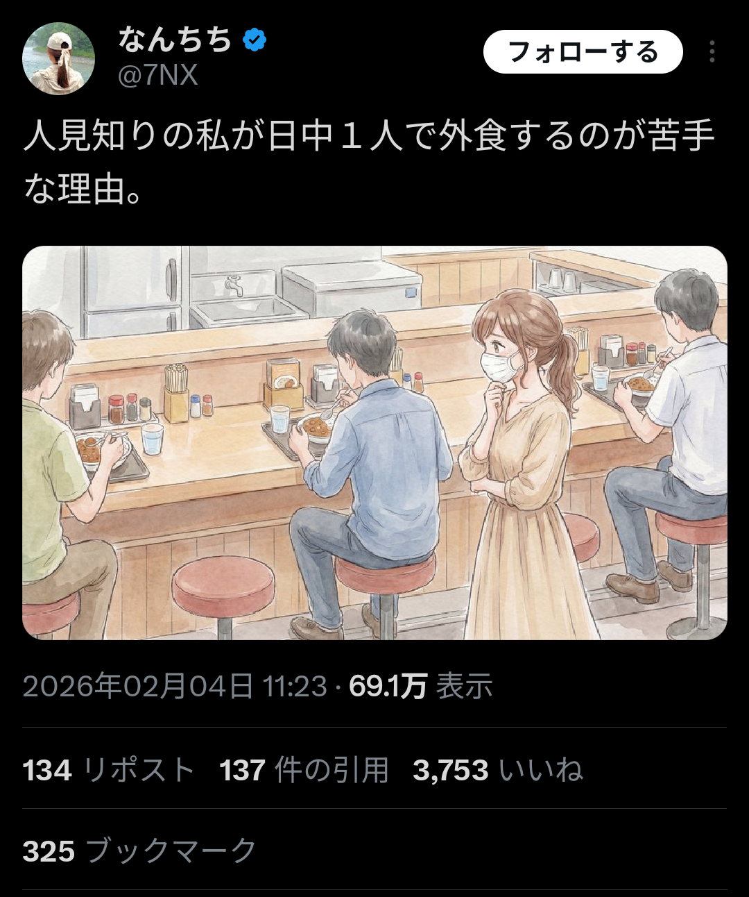 【画像】人見知り系女子が1人で外食出来ない理由、陰キャのせいだったwwww