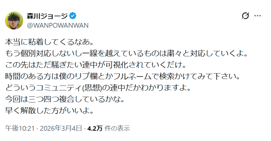 【悲報】はじめの一歩作者、粘着するアンチに言及「一線超えた奴は粛々と対応していく」