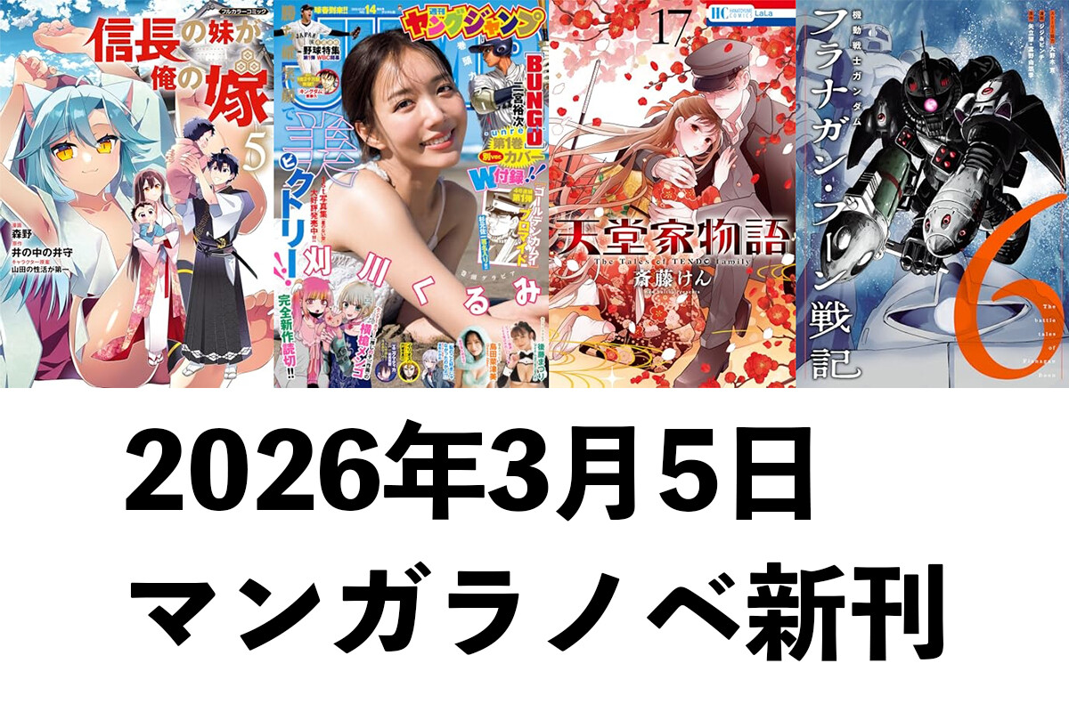 【3/5発売】マンガラノベ新刊:「信長の妹が俺の嫁 5」「ヤングジャンプ」「天堂家物語 17」「機動戦士ガンダム フラナガン・ブーン戦記 6」など