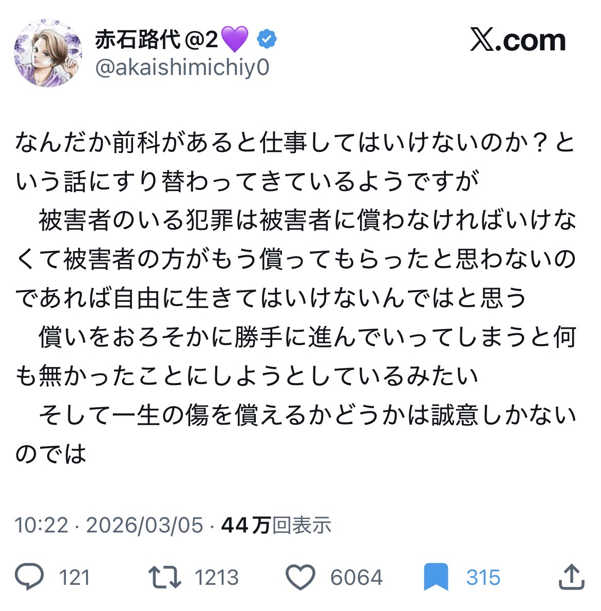 【正論】女性漫画家、お気持ち表明「被害者のいる犯罪は被害者がもう償ってもらったと思わないのであれば自由に生きてはいけないと思う」