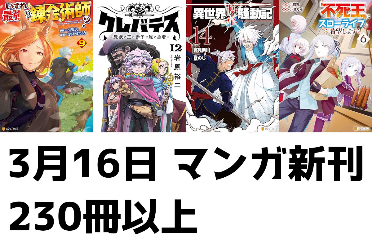 【3/16発売】マンガ新刊:「いずれ最強の錬金術師?9」「クレバテス 12」「異世界転生騒動記 14」「不死王はスローライフを希望します 6」など230冊以上
