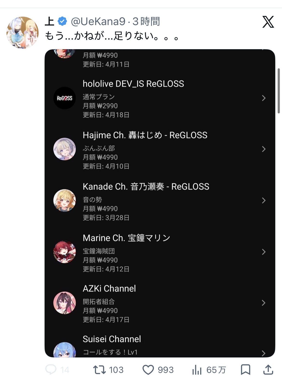 【画像】Vtuberファン「Vtuberに貢ぎすぎてお金が足りない...」かわいそう過ぎると話題に