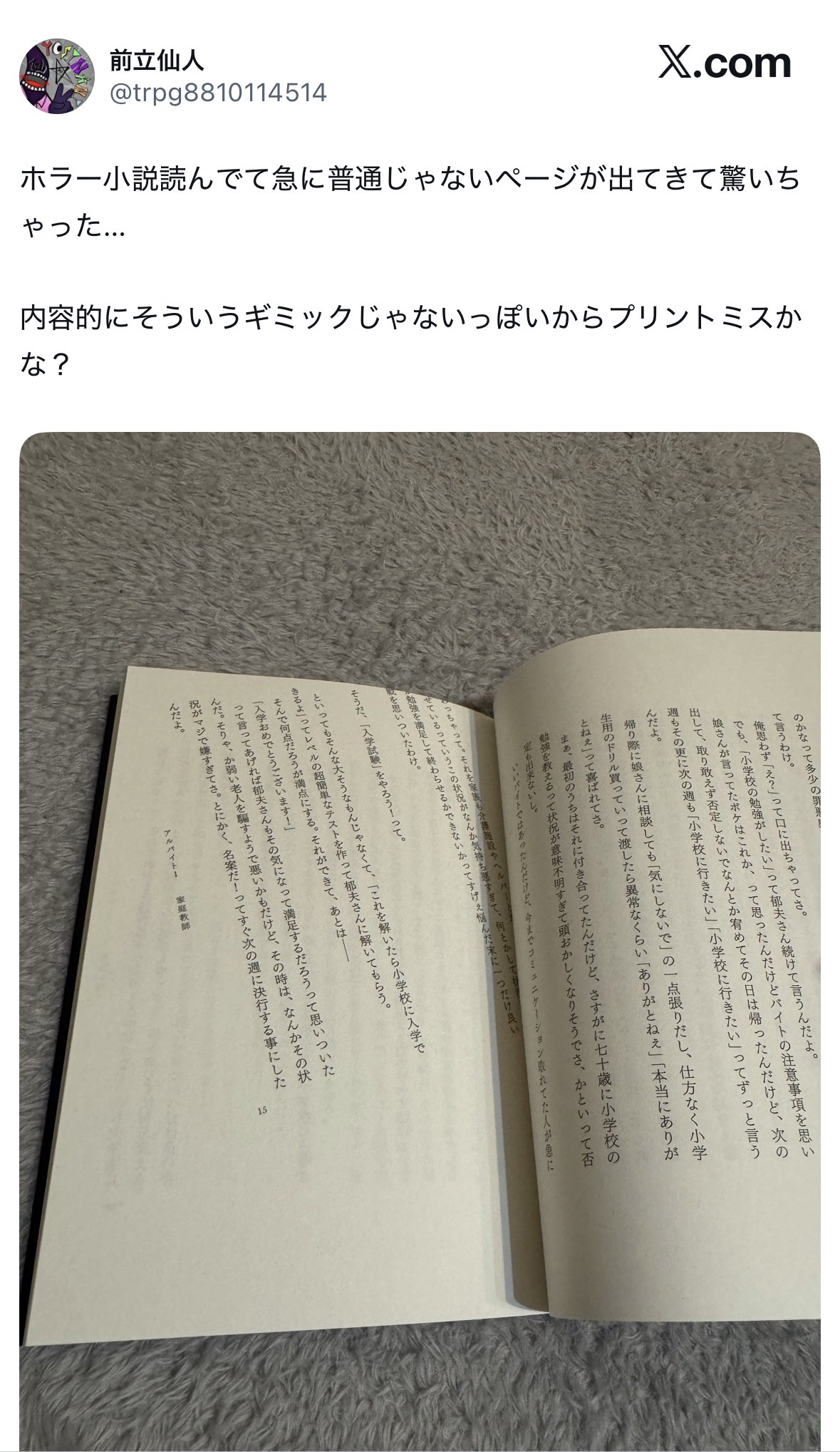 【悲報】ホラー小説渾身のギミック、読者に「印刷ミス」だと思われる→作者が謝罪する羽目にwwww