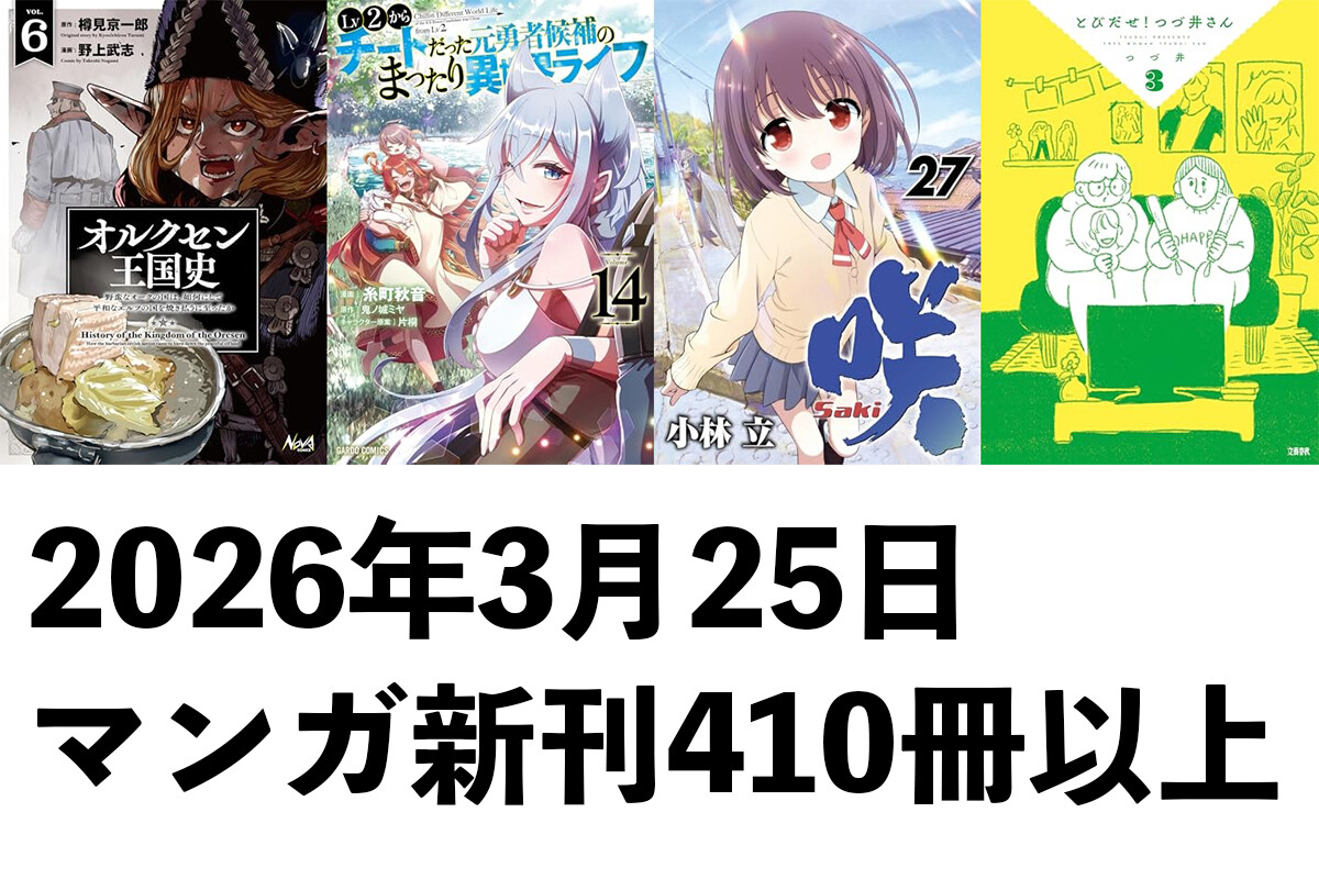 【3/25発売】マンガ新刊:「オルクセン王国史 6」「Lv2からチートだった元勇者候補のまったり異世界ライフ 14」「咲-Saki- 27」「メカニカル バディ ユニバース 1.0 6」など410冊以上
