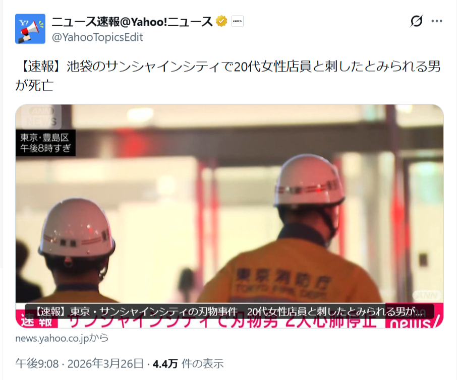 【悲報】池袋ポケモンセンターの事件、刺された女性店員と犯人が死亡