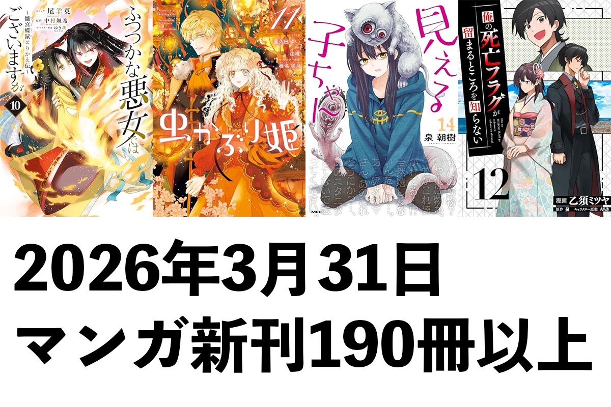 【3/31発売】マンガ新刊:「ふつつかな悪女ではございますが 10」「虫かぶり姫 11」「見える子ちゃん 14」「俺の死亡フラグが留まるところを知らない 12」など190冊以上